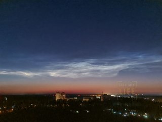 Сегодня утром, на востоке, было достаточно редкое явление — серебристые облака. Это облака на высоте около 80км, они уже освещены солнцем, хотя внизу ночь почти.