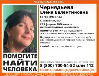 25 февраля в районе улицы Орджоникидзе пропала Чернядьева Елена Валентиновна (51 год). Вышла из дома и не вернулась. До сих пор её местонахождение неизвестно.